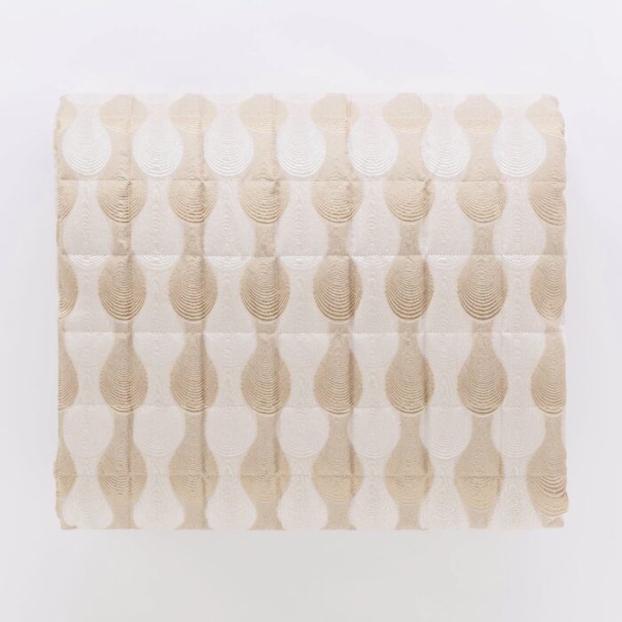 Il trapuntino matrimoniale in raso jacquard è pensato per la mezza stagione, offrendo una copertura leggera ma calda, ideale per le notti di primavera e autunno. La lavorazione jacquard, combinata alla lucentezza del raso, crea un gioco di luce e rilievi che dona un tocco di lusso sartoriale al letto